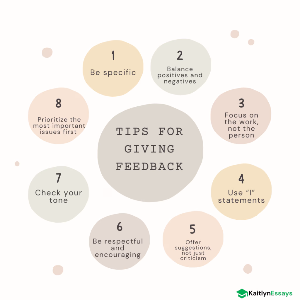 Evidence-Based Comments Feedback should reference specific criteria, rubrics, or assignment requirements. This grounds the review in objective standards rather than personal preferences.